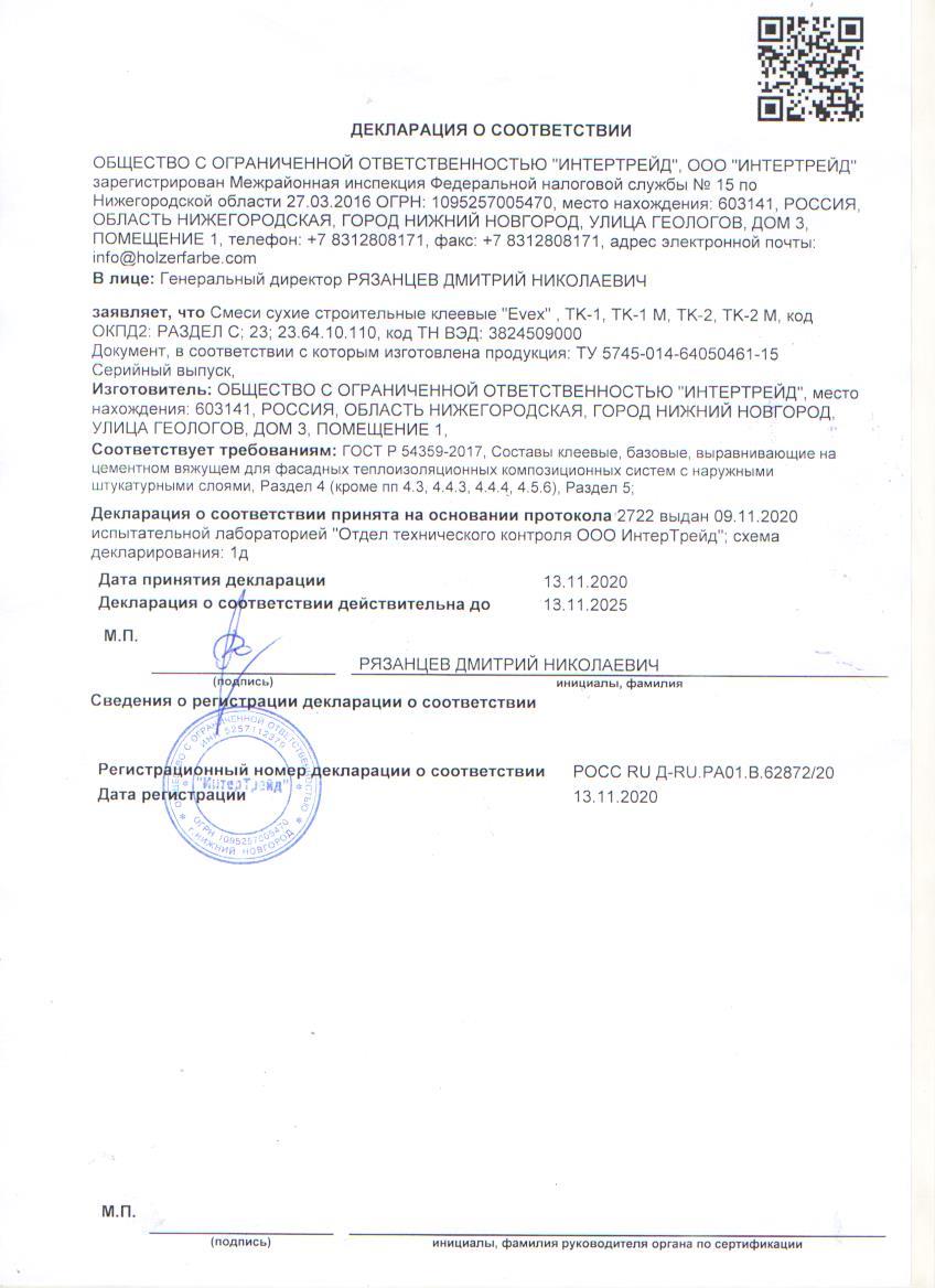 Смесь предназначена для крепления пенополистирольных и минераловатных плит на минеральных основаниях и создания на них выравнивающего слоя, армированного стеклосеткой, при устройстве систем фасадной теплоизоляции.